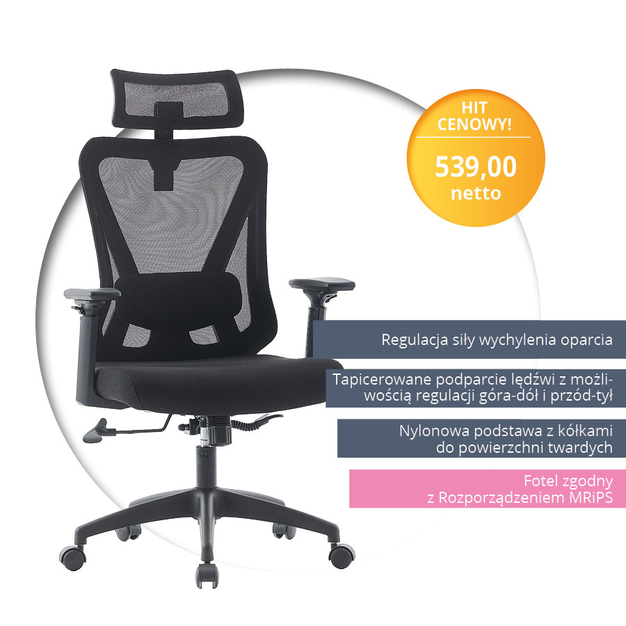 siatka / tkanina czarna, regulowane podłokietniki (93K106X)
