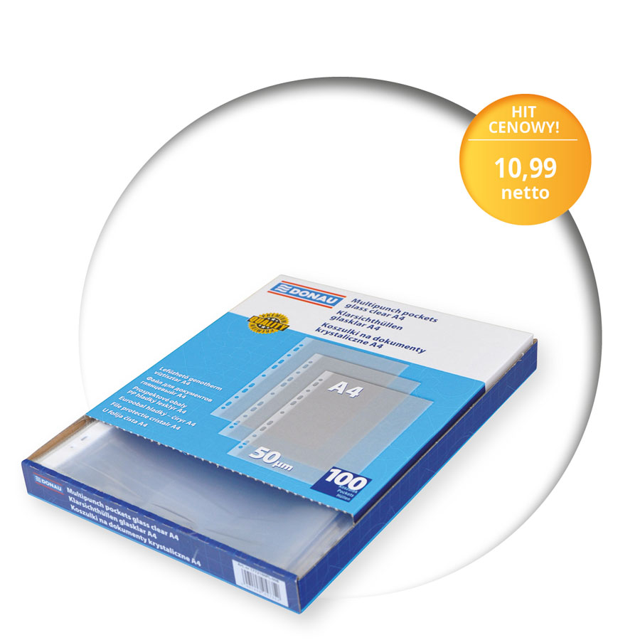 Koszulki DONAU charakteryzują się krystaliczną przezroczystością, dzięki czemu zawartość jest doskonale widoczna, a właściwości antyrefleksyjne eliminują odblaski, umożliwiając komfortowe przeglądanie dokumentów w każdych warunkach oświetleniowych.