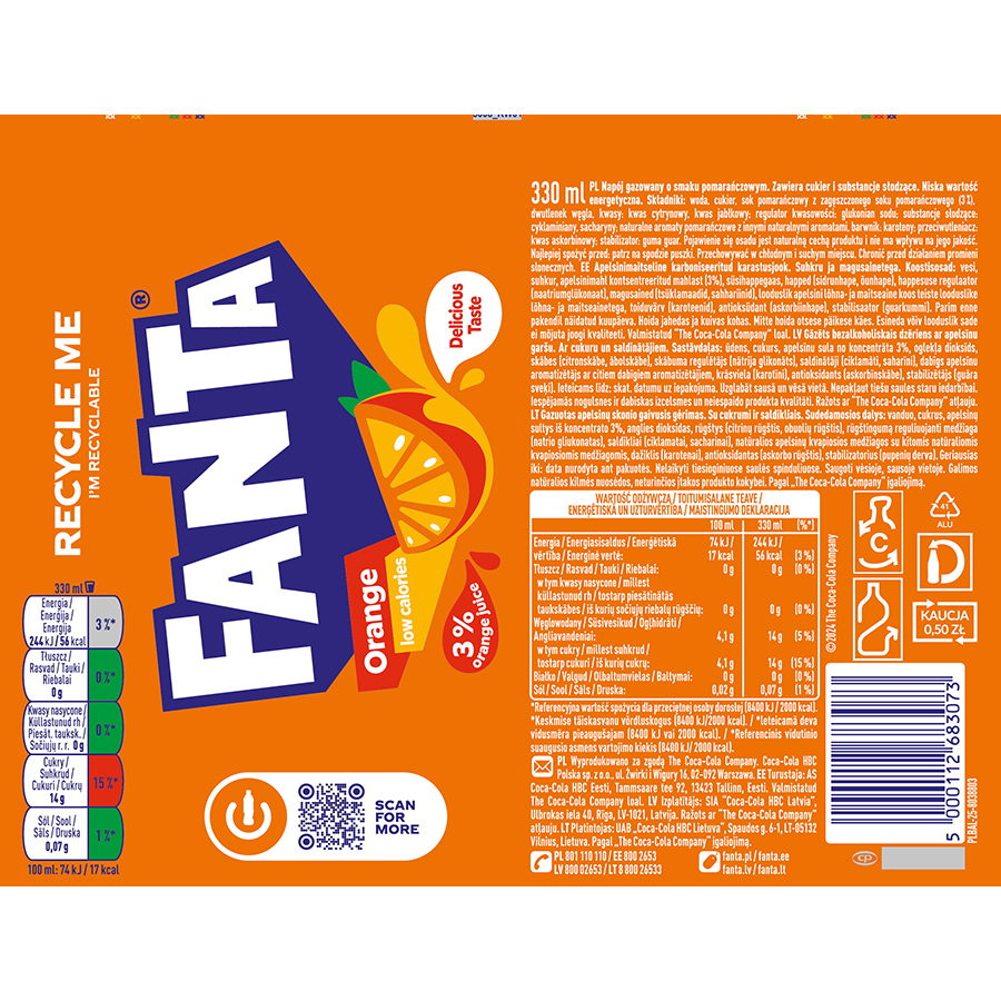 Fanta pomarańczowa opakowanie kaucyjne