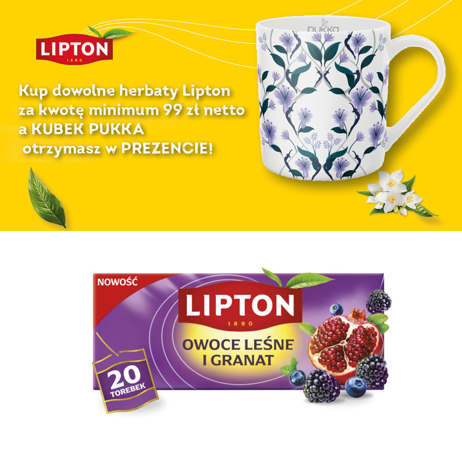 jm.: opakowanie Kup dowolne herbaty Lipton za kwotę minimum 99 zł netto a kubek PUKKA otrzymasz w PREZENCIE!